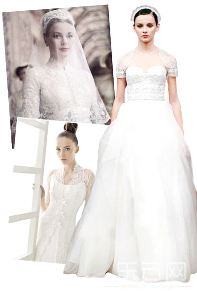 55年前,当年格蕾丝·凯利身着一袭长袖蕾丝婚纱嫁入摩纳哥王室。2011年,凯特·米德尔顿 (Kate Middleton) 也同样身穿一袭长袖蕾丝婚纱,让这种端庄、大气、复古感十足的婚纱款式再次走入我们的视线。