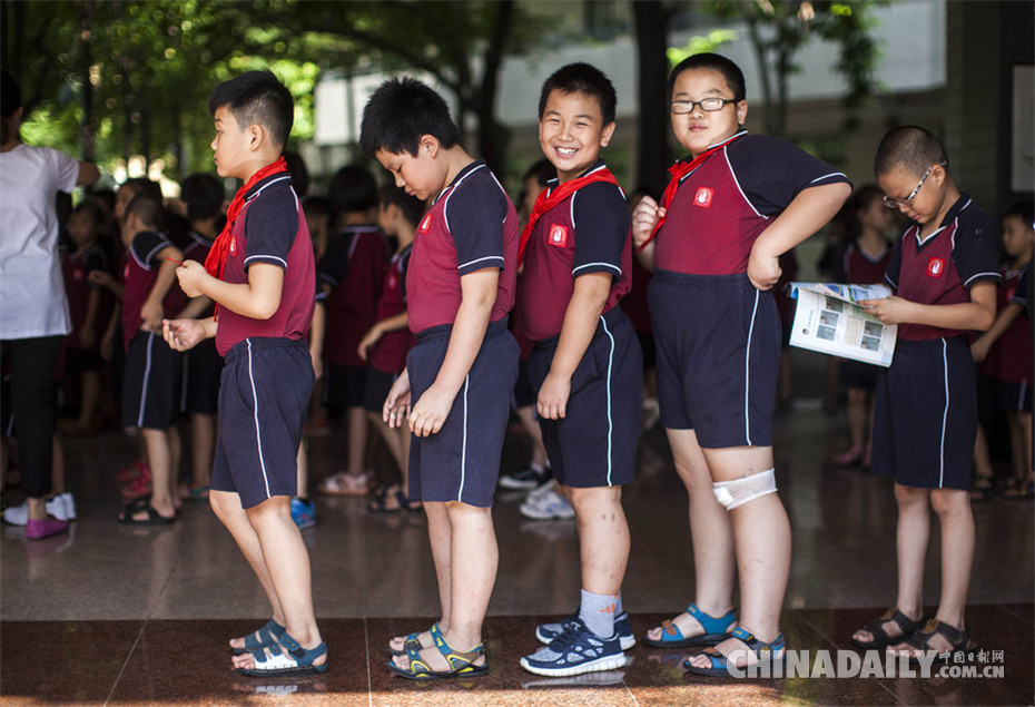 2014年9月1日,广东顺德,开学第一天,顺德养正学校开学典礼,小学生排队走进礼堂。