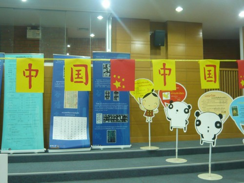 上午8:30正,在校长的敲锣声响起,活动正式开始,学校立刻成了欢乐的海洋,学生们兴高采烈的奔向各个展点,而中文馆更是以独特的魅力吸引了学生去参观。中华文化源远流长,汉字的起源、发展的介绍,让学生对汉字有了个前面的认识;兵马俑的道具造型,让我们仿佛回到几千年前秦帝国武士的叱咤风云;学校的平面模型,全中文的介绍引得学生们纷纷发问,这里中文怎么说,那里叫什么?脸谱、书法、剪纸、中文歌、还有国宝“熊猫”也到现场助兴,逗得小朋友们哈哈大笑.....学生们还可以亲身体验,有的一笔一划的写毛笔,有的在剪纸、有的在画脸谱....。.哪一副认真劲,真的很可爱啊!中文比赛经过选手们激励的竞争,来自萨拉萨学校的选手表现优异,取得第一名;北榄易三仓学校第二名;佛统森威学校第三名。