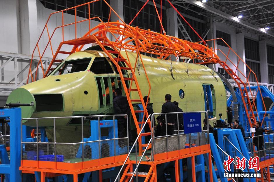 目前世界上在研的最大的水陆两栖飞机AG600又取得关键性进展,3月17日上午中航工业通飞在珠海宣布,该款机型的机头今天在中航工业成飞民机实现交付。戴海滨 摄